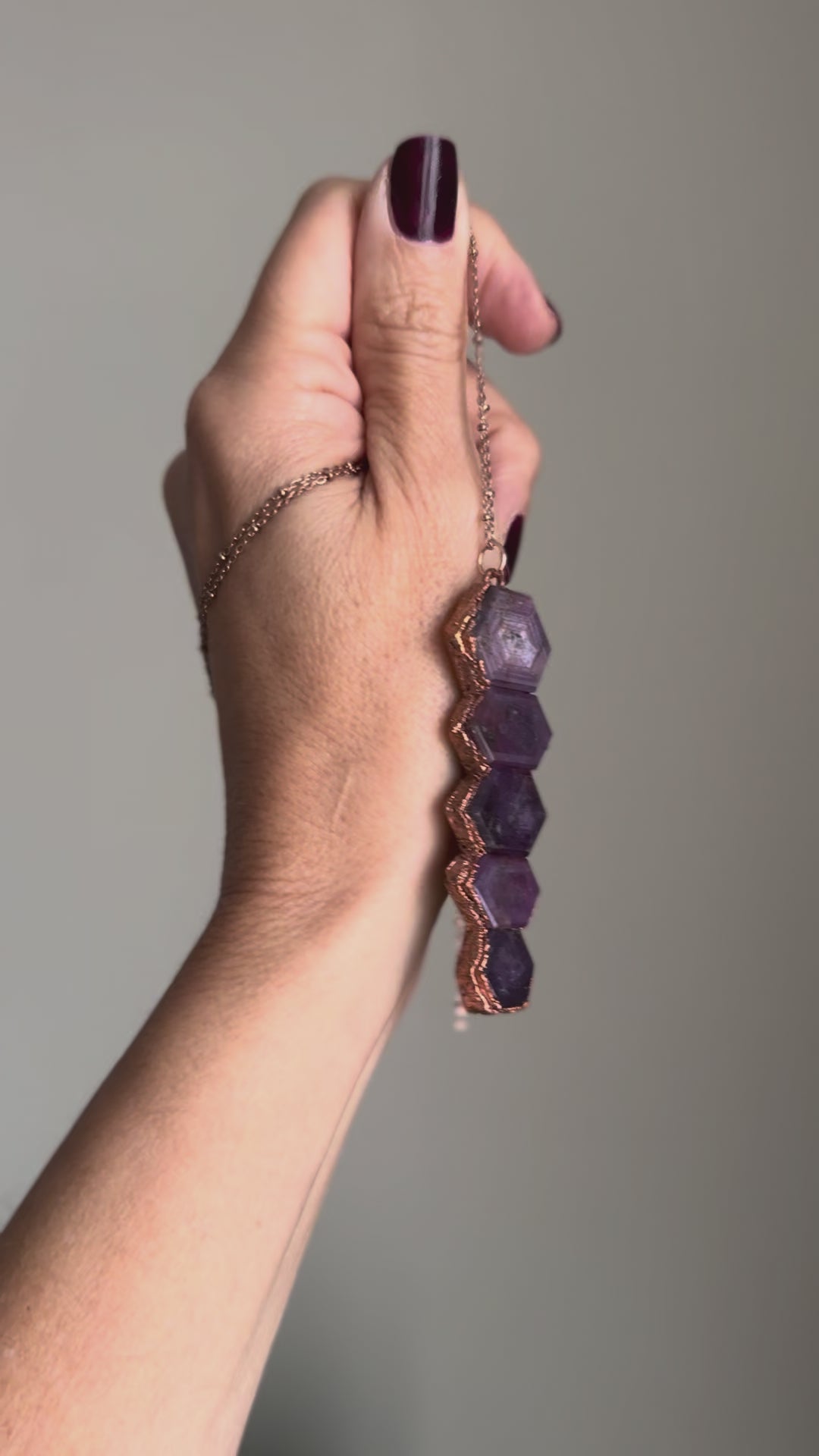 Composed of five beautiful natural sections of ruby root arranged vertically like a column of purple light.