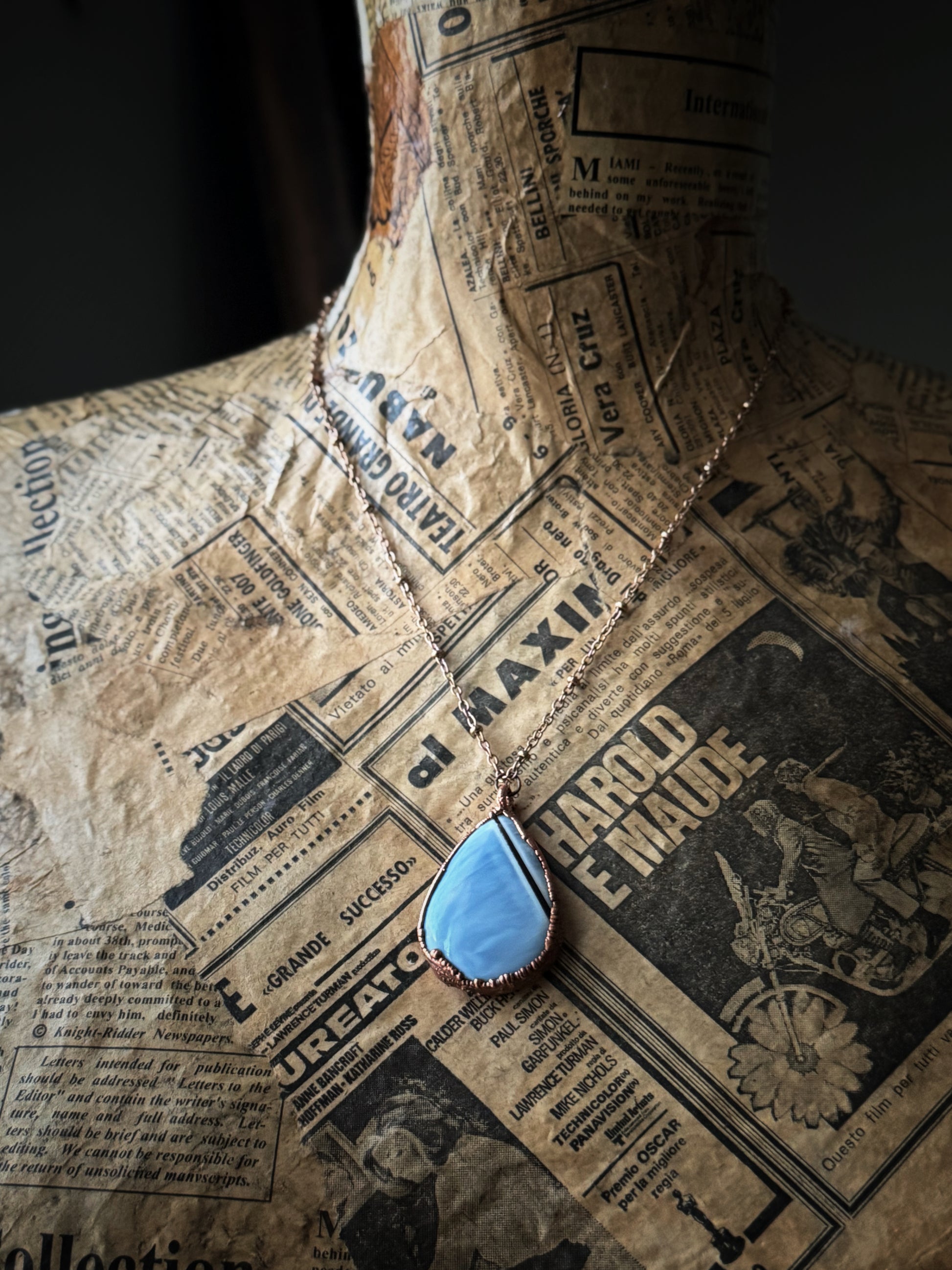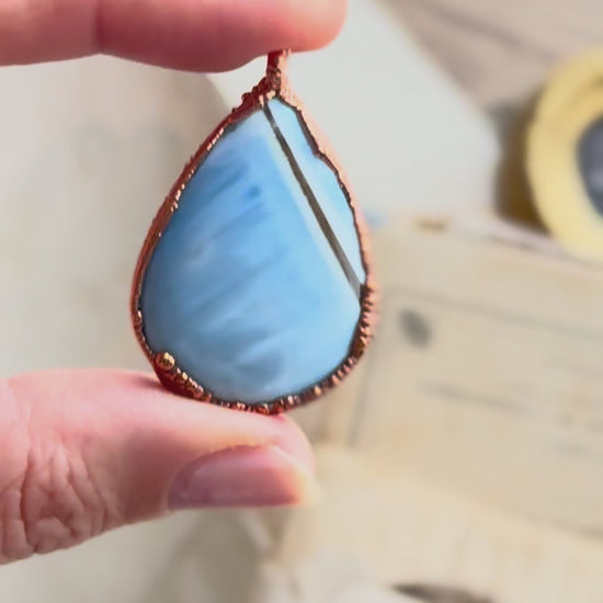 Blue opal is a naturally occurring variety of common opal, characterized by delicate hues ranging from sky blue to turquoise, sometimes with milky or translucent highlights. Its opalescent luster comes from the amorphous internal structure of hydrated silica, which traps tiny amounts of water—up to 10% of its weight.