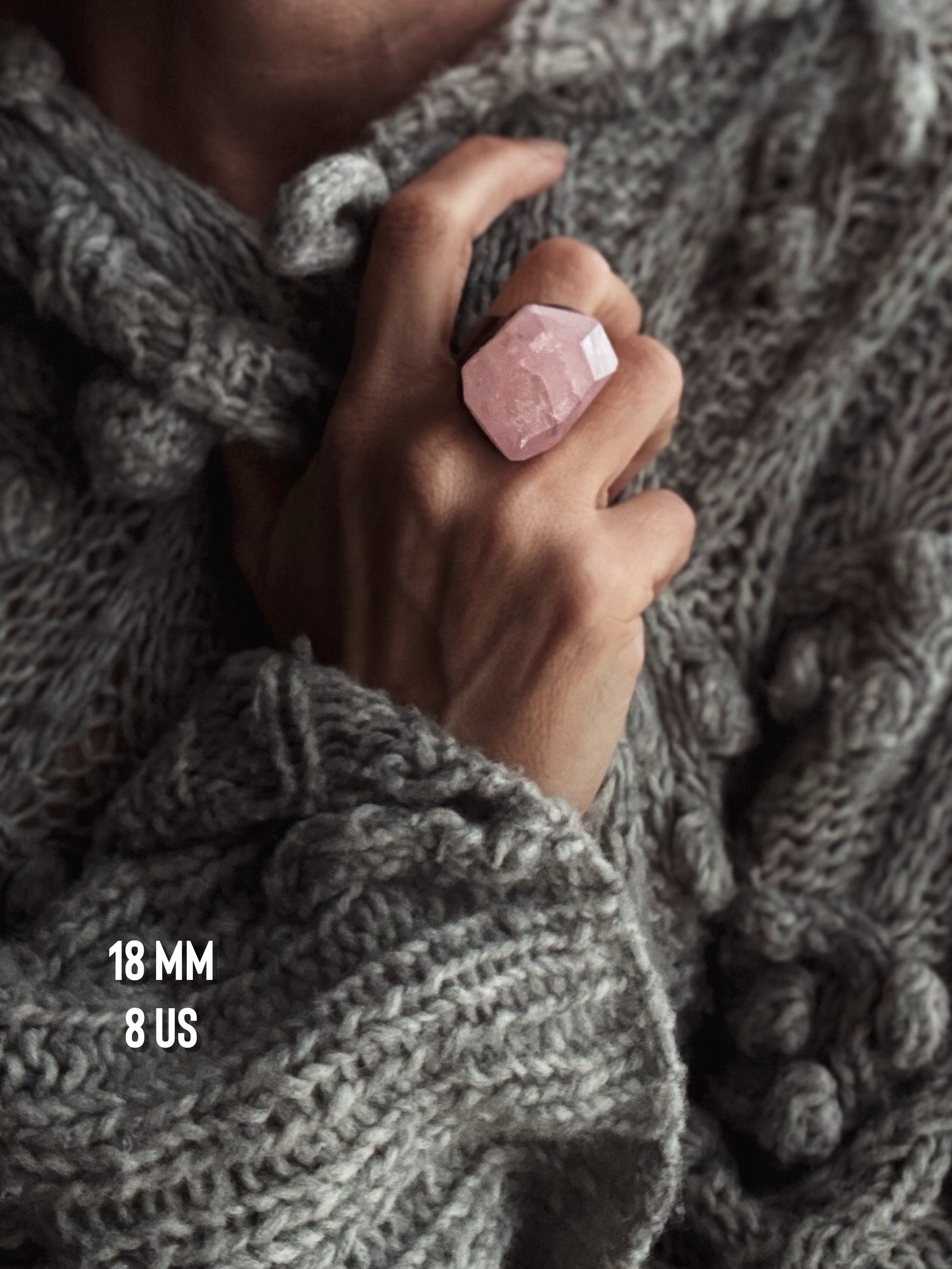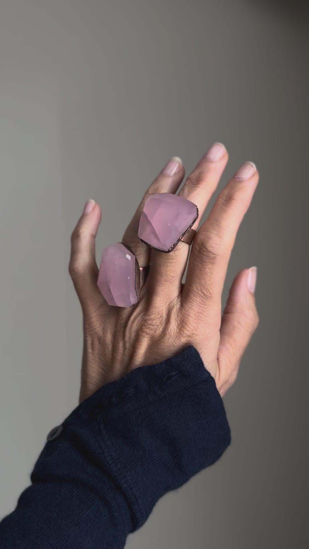 Anelli in rame con pietre pregiate di Quarzo rosa con sfaccettature grandi realizzate a mano