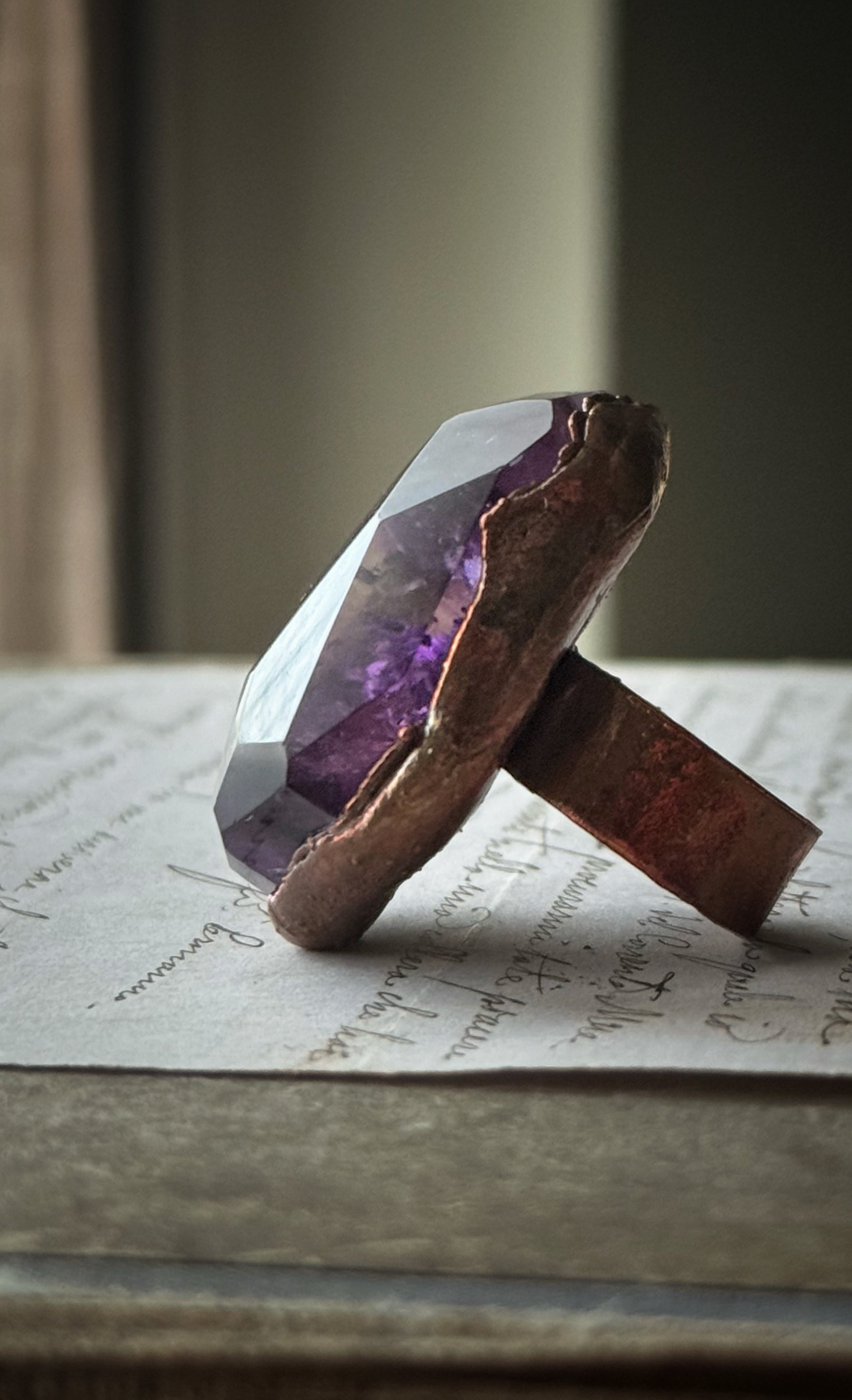 Anello in rame con Ametrino sfaccettato a mano, misura 8 (US)