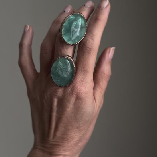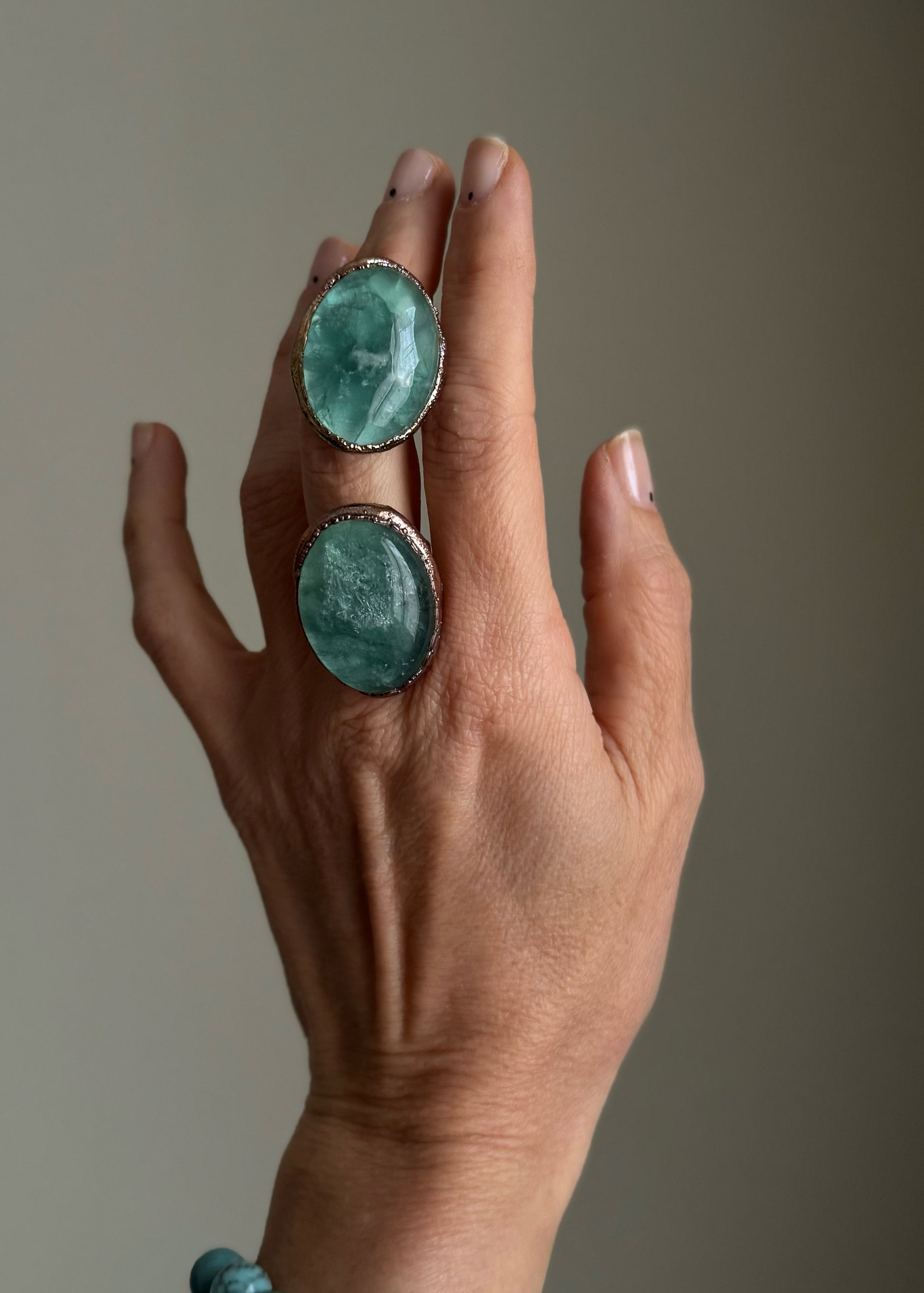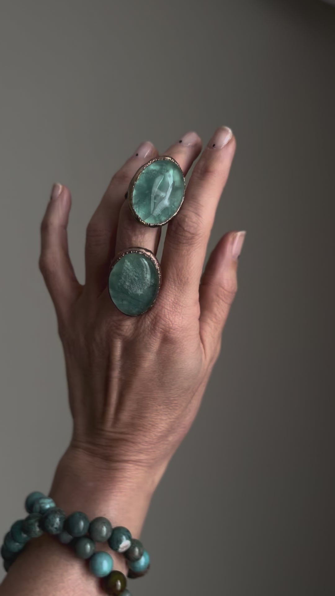 Anello Artigianale in Rame con Fluorite Verde Naturale