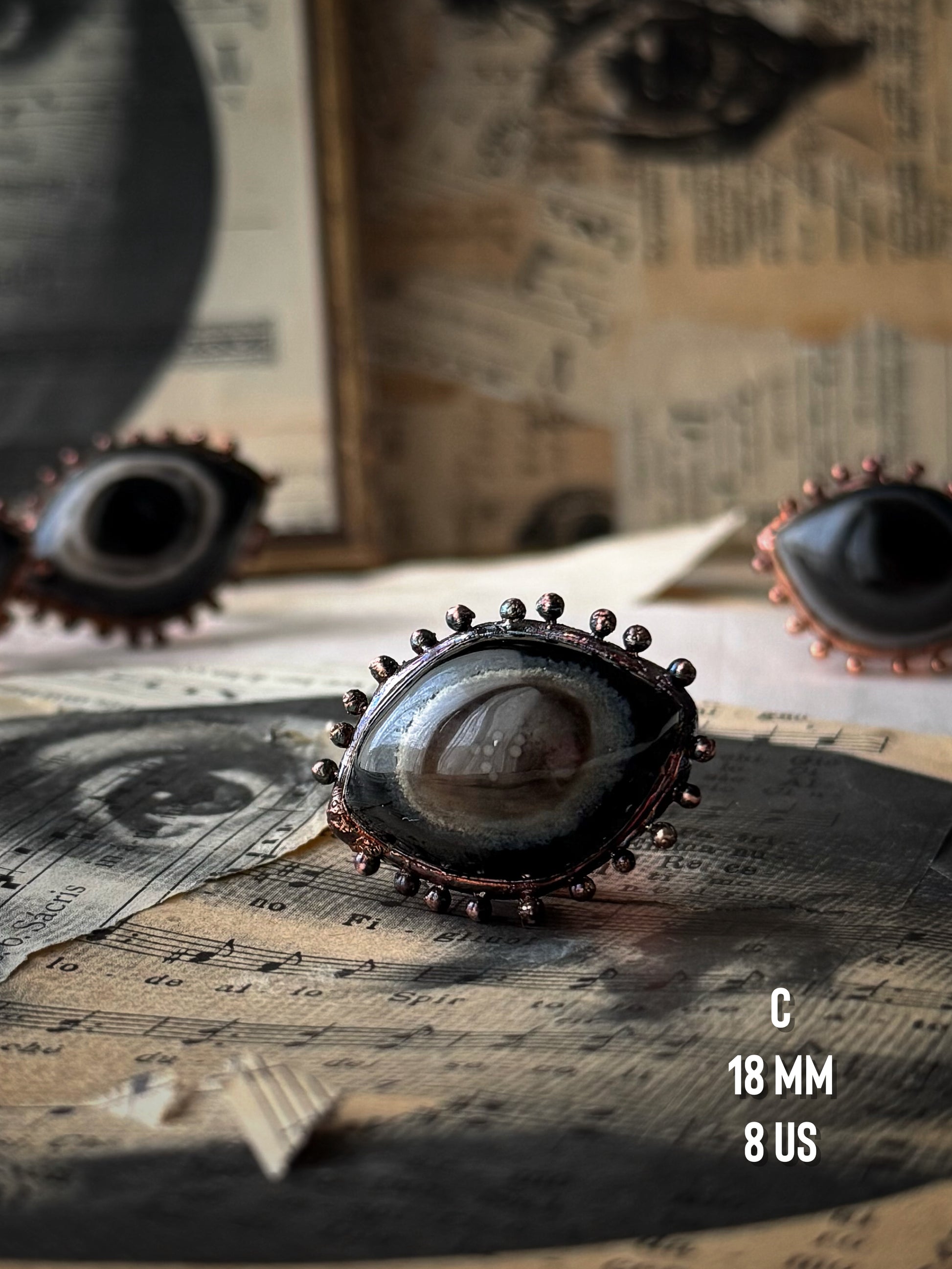 Anello Occhio con Agata occhiata - Fatto a mano - mis. 6-8-10