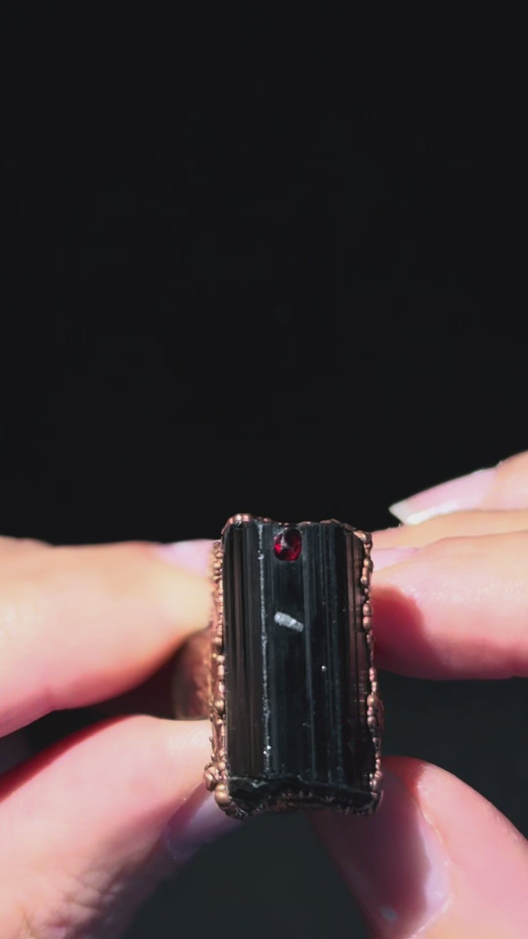 La tormalina nera è una pietra di radicamento e protezione, il granato stimola energia vitale e coraggio, mentre il quarzo amplifica e armonizza entrambe le forze.