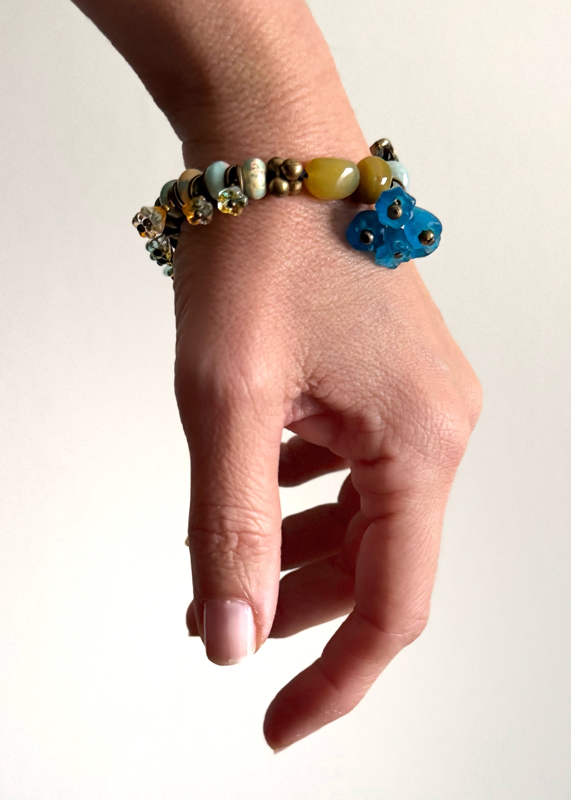 Bracciale con ciondoli e pietre miste azzurro e giallo- Modello 10