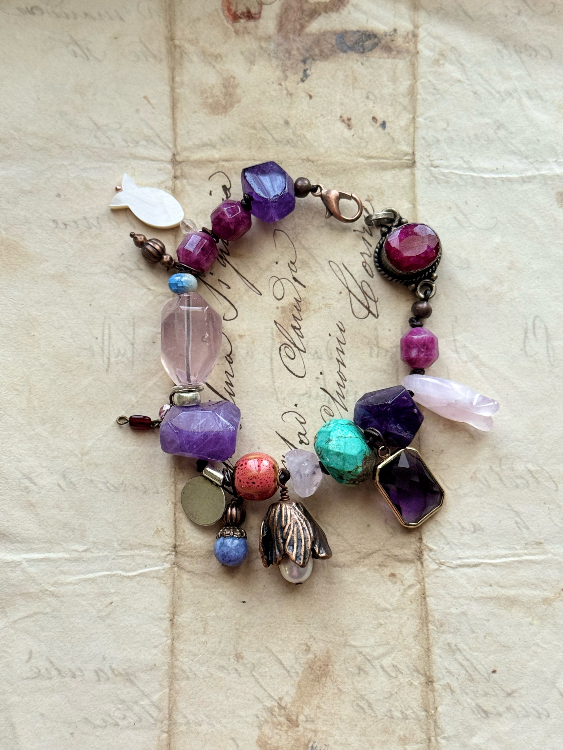 Bracciale con ametiste, pietre Miste e Ciondoli - Modello 04