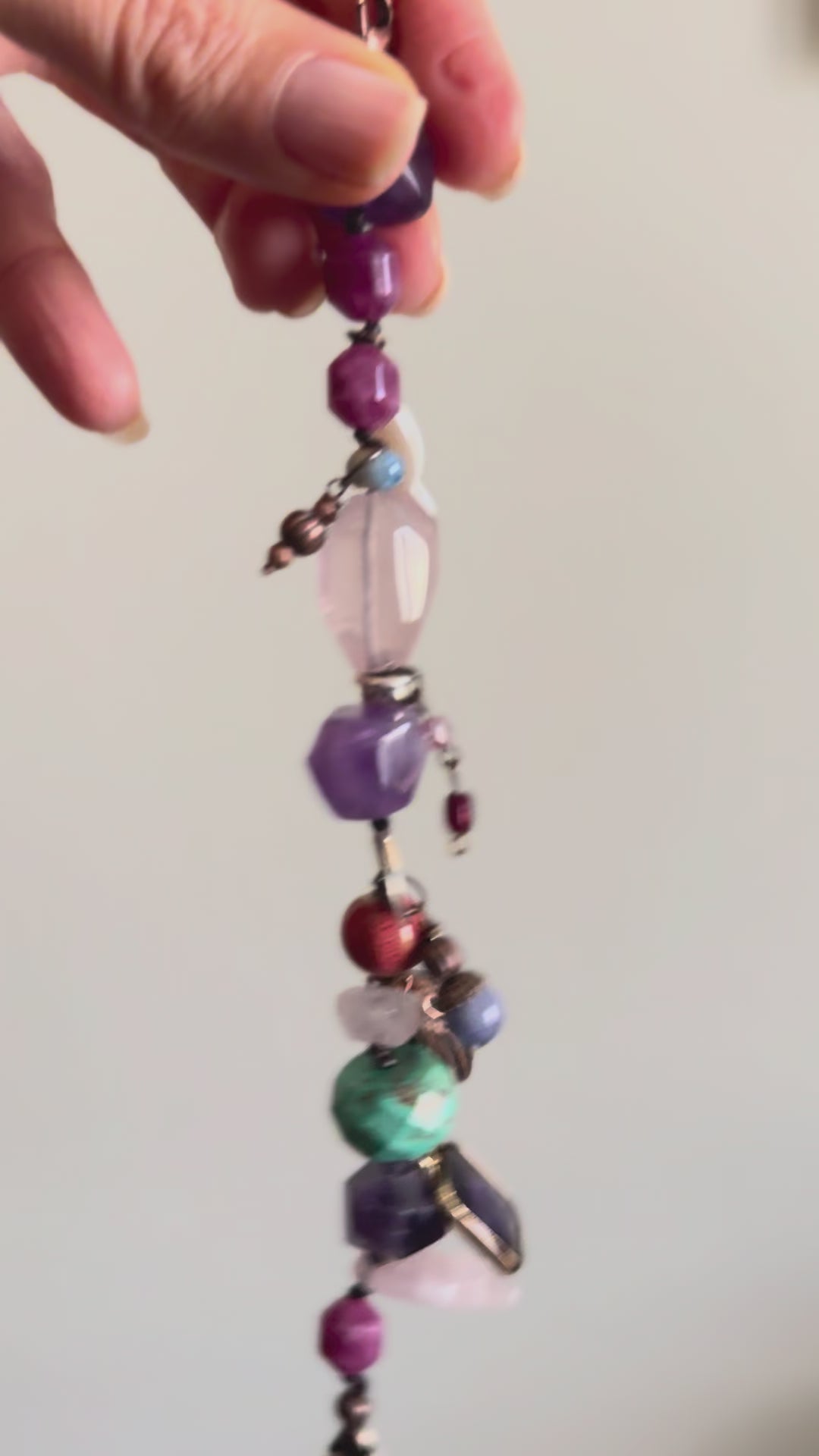 - Materiali naturali di alta qualità: quarzo rosa, ametista, turchese, radice di rubino, madreperla, vetro di Boemia ed elementi in stile tibetano .