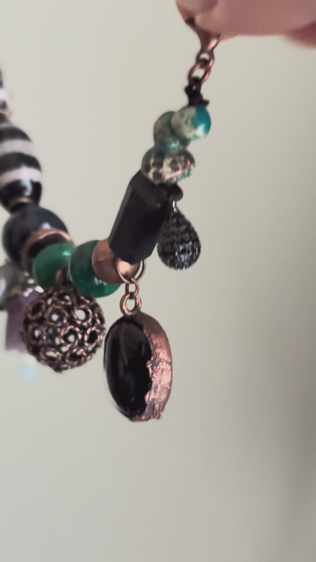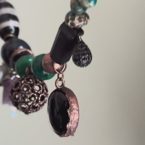 Bracciale con pietre nere, verdi e Ciondoli - Modello 09