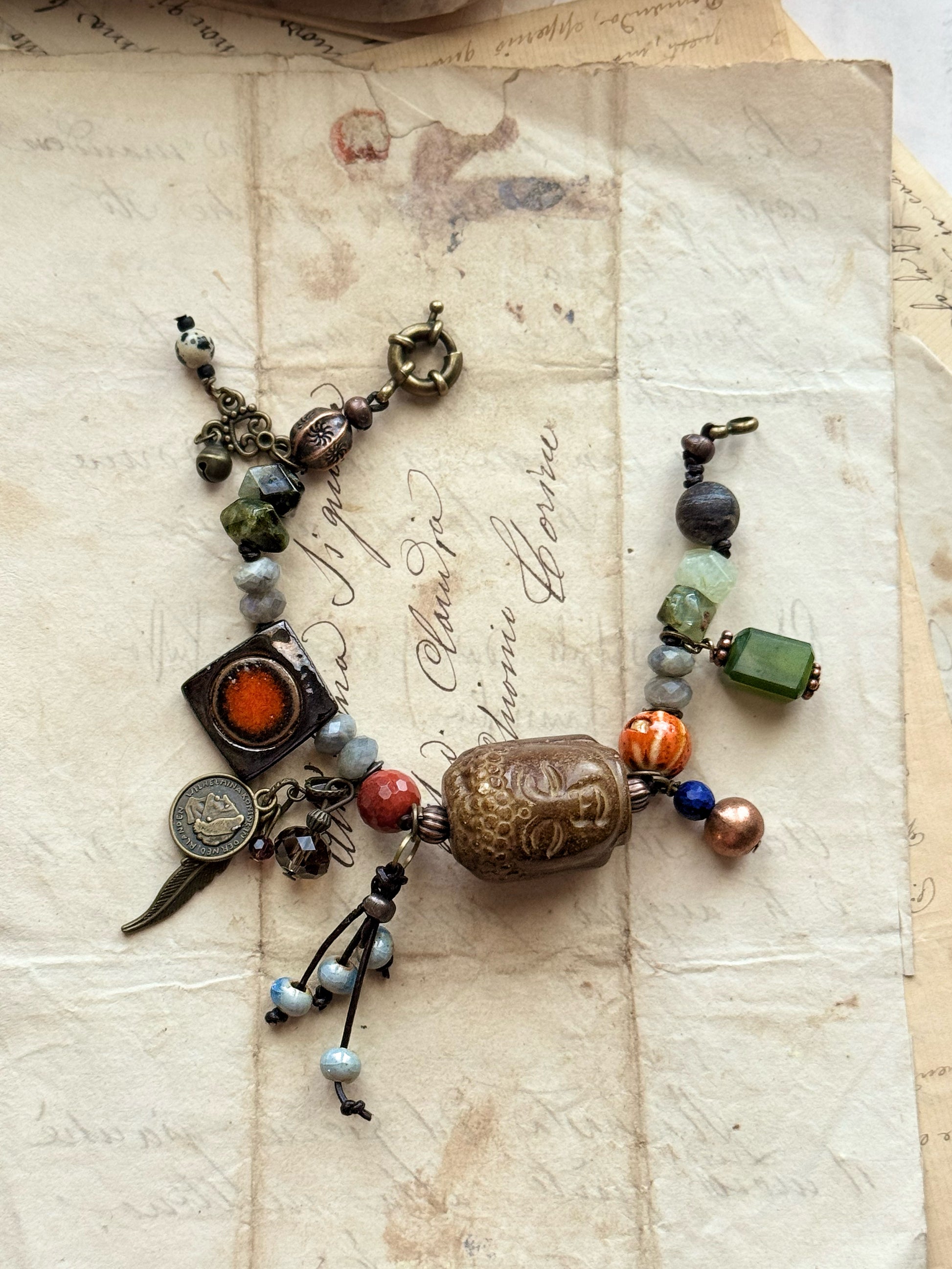 Bracciale con testa di Buddha, Pietre Miste e Ciondoli - Modello 02