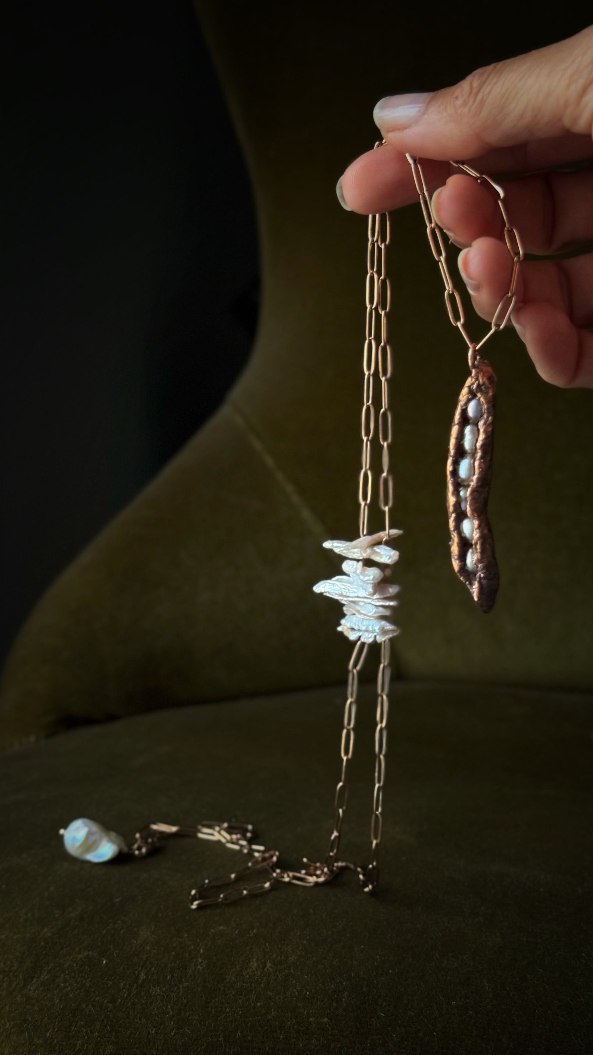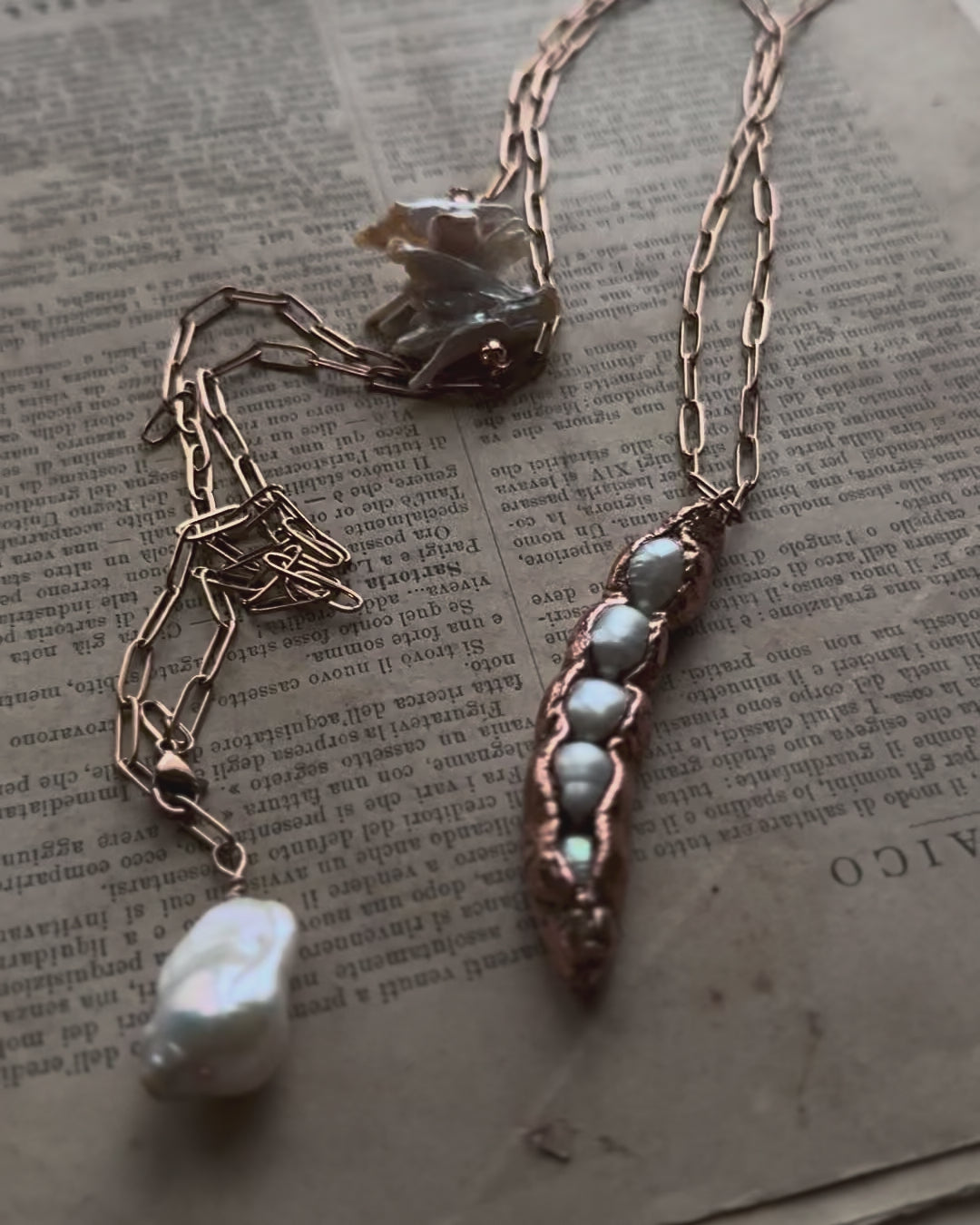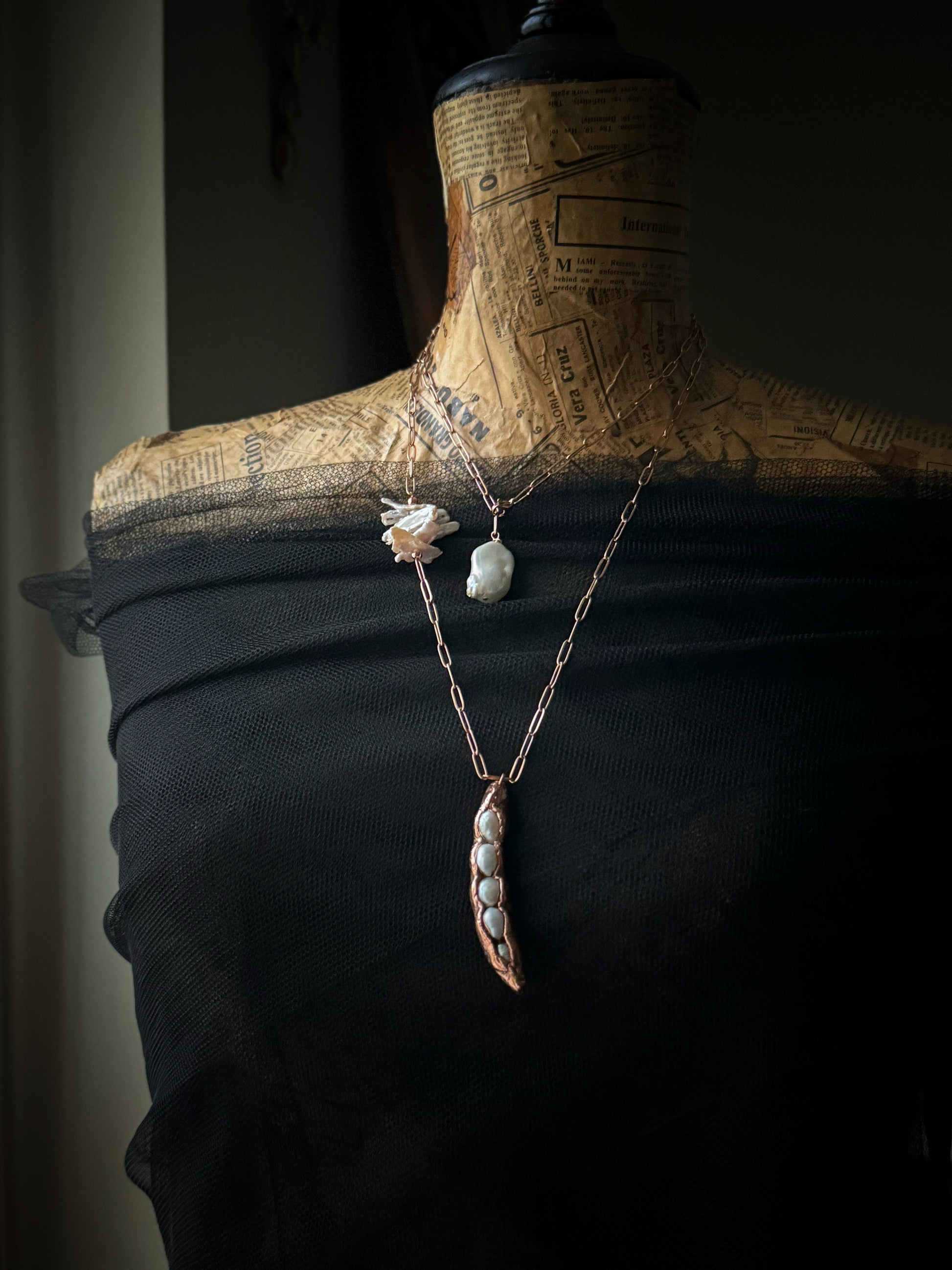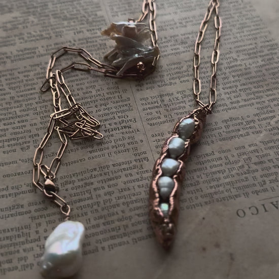 - avvolta doppia, con un girocollo che mostra la grande perla barocca come pendente e un secondo livello più lungo con il baccello