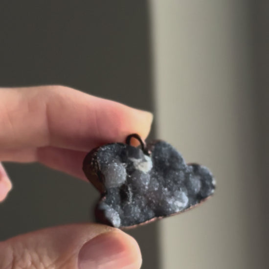 Quando incontra la luce, la drusa la frammenta in scintille minuscole, irregolari e soffuse, come un cielo notturno visto al contrario, incastonato nella pietra.