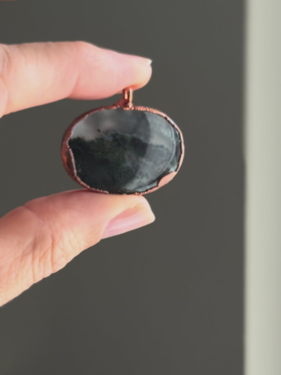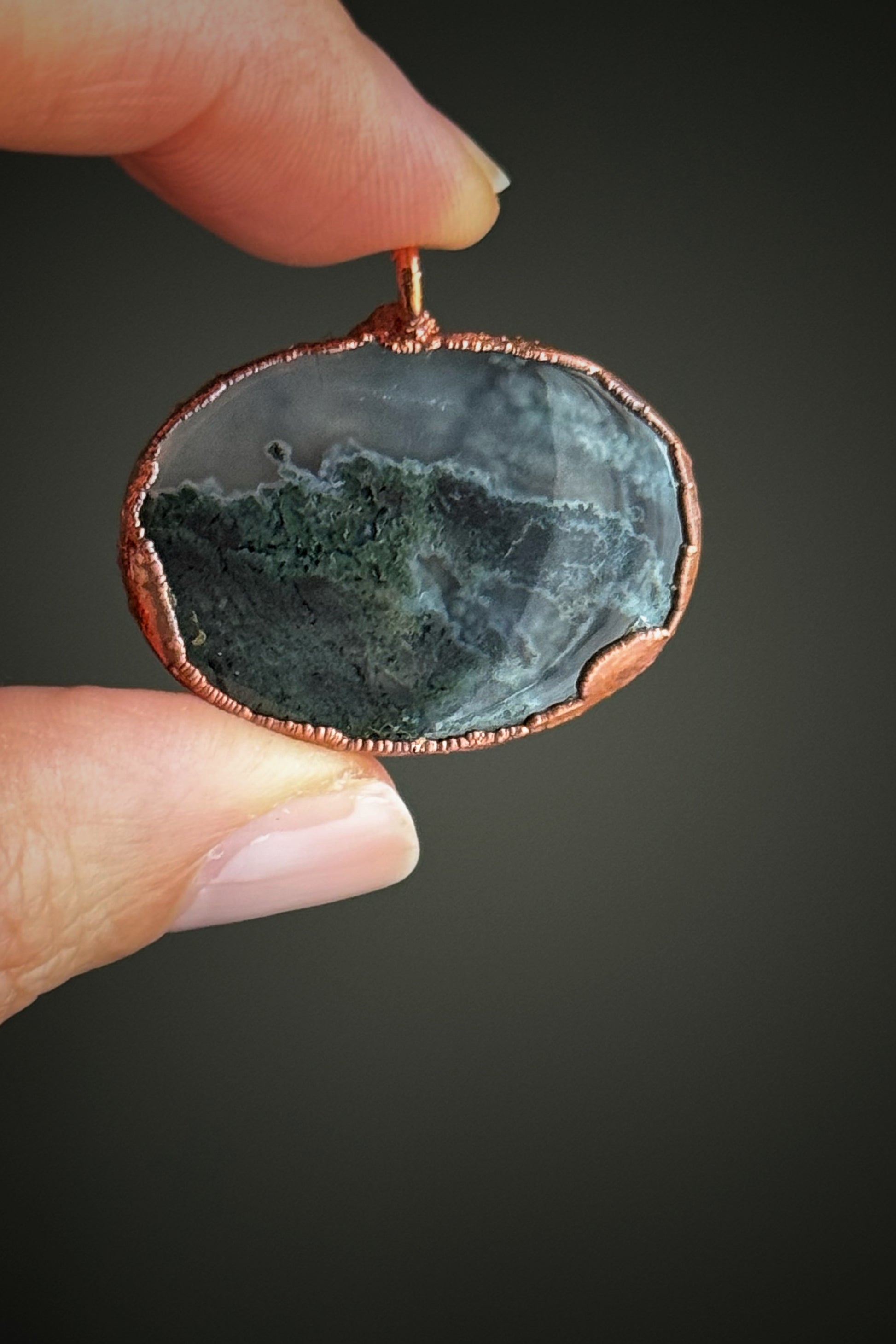 Ciondolo in Agata muschio con formazioni naturali tridimensionali
