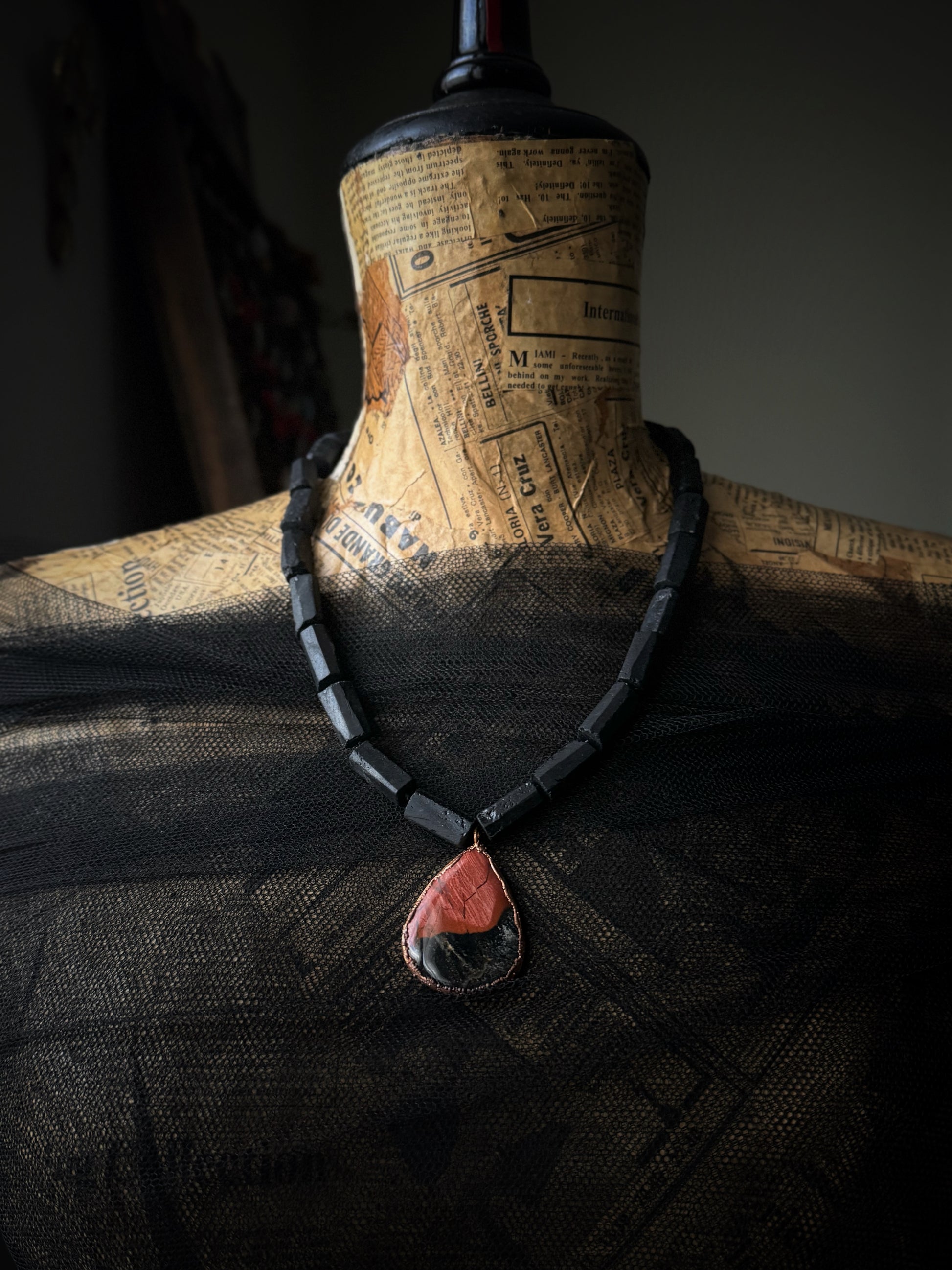 Collana girocollo annodata a mano con pietre grezze di tormalina nera