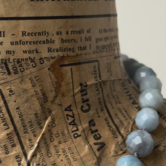Dall’altro lato la collana prosegue solo con acquamarina rotonda sfaccettata.
